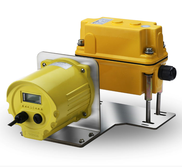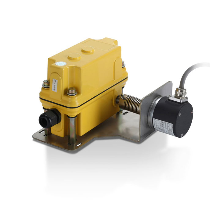 在編碼器旋轉(zhuǎn)的同時,一體化行程開關(guān)裝置的中軸通過減速器也在同步旋轉(zhuǎn),如到達限位狀態(tài),即輸出“通”或“斷”的信號給控制器。